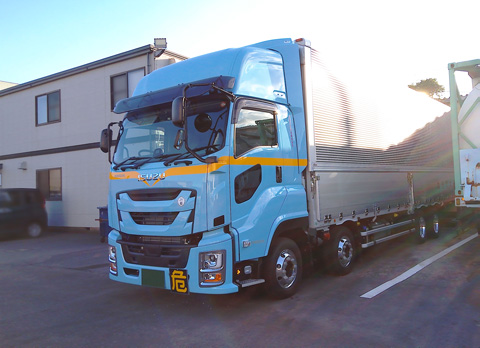 茂原営業所では初となる、丸全カラーの車両です。